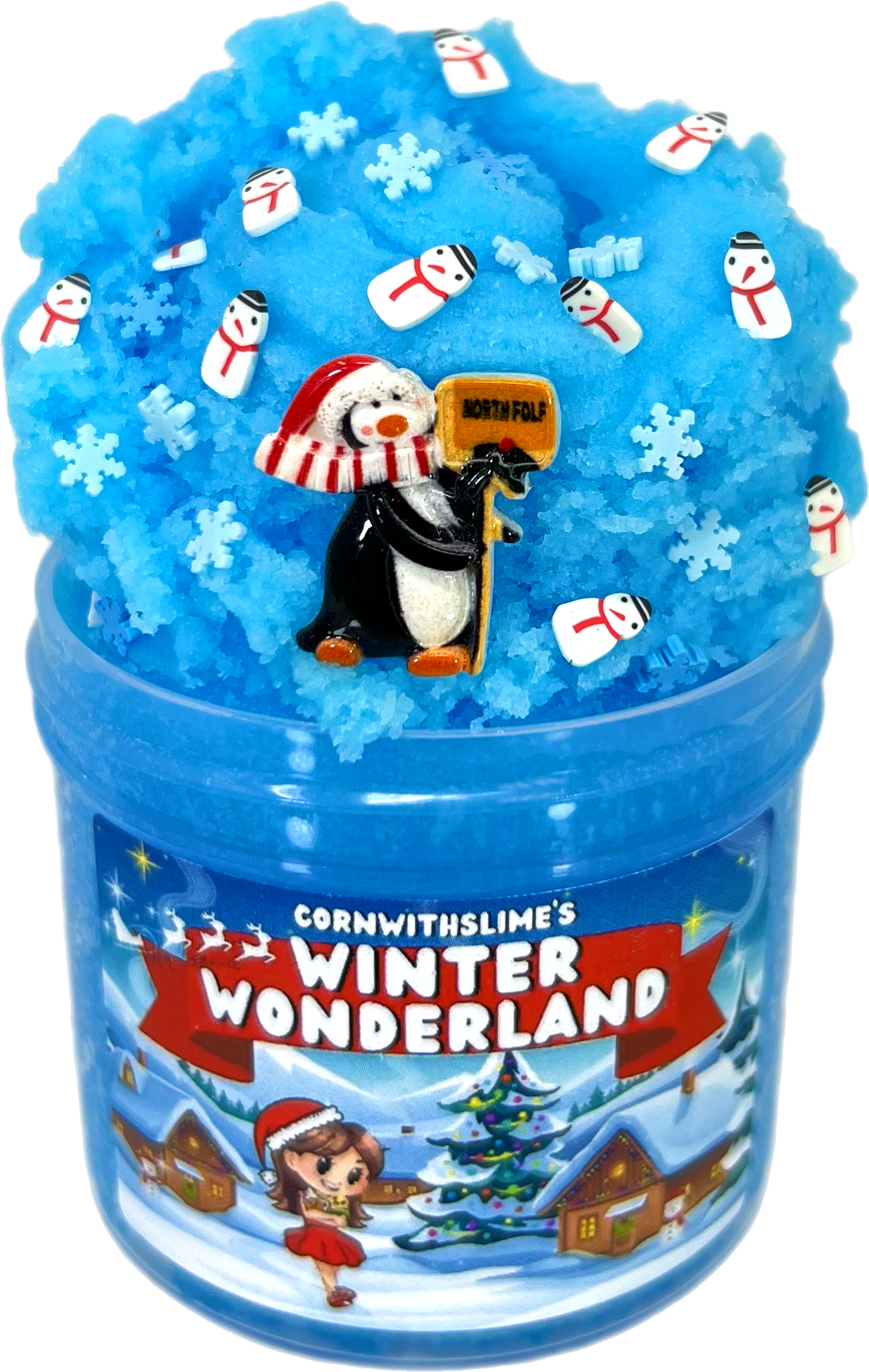 Winter Wonderland – A soft icee slime scented like a cozy Christmas candle, complete with wintery add-ins.