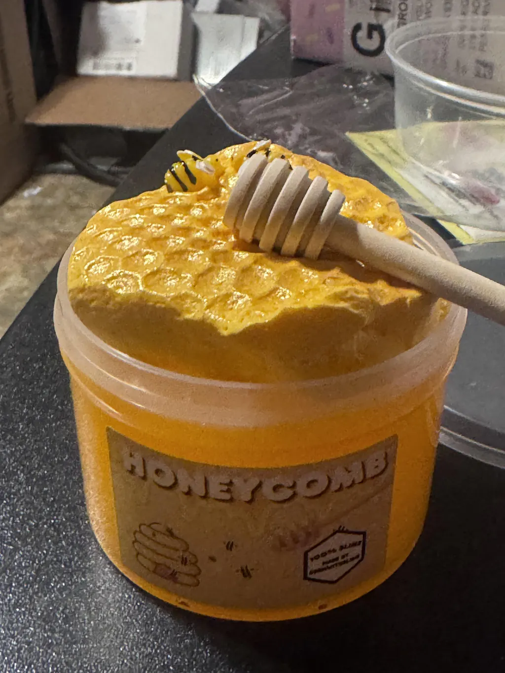 8oz coated clear slime with honeycomb DIY clay scented vanilla honey