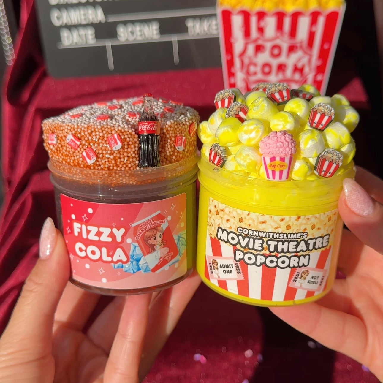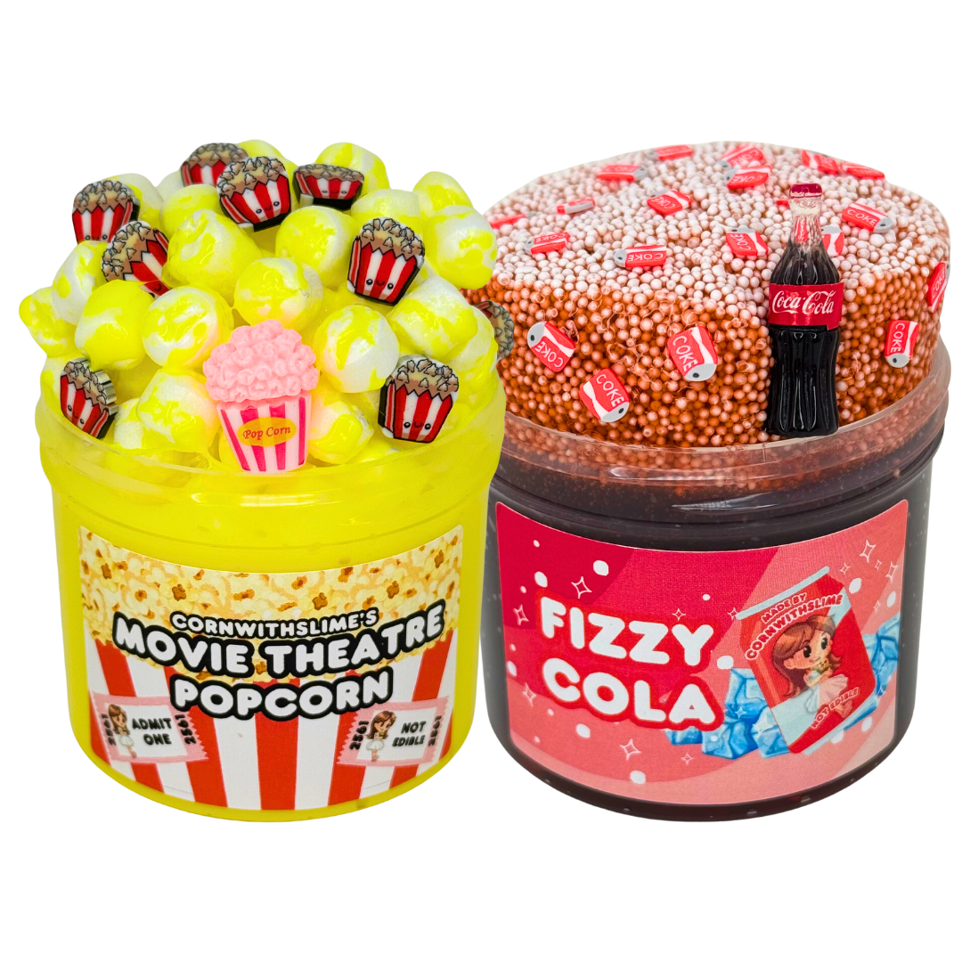 2 6oz slimes: Movie Theater Popcorn & Fizzy Cola (both scented)