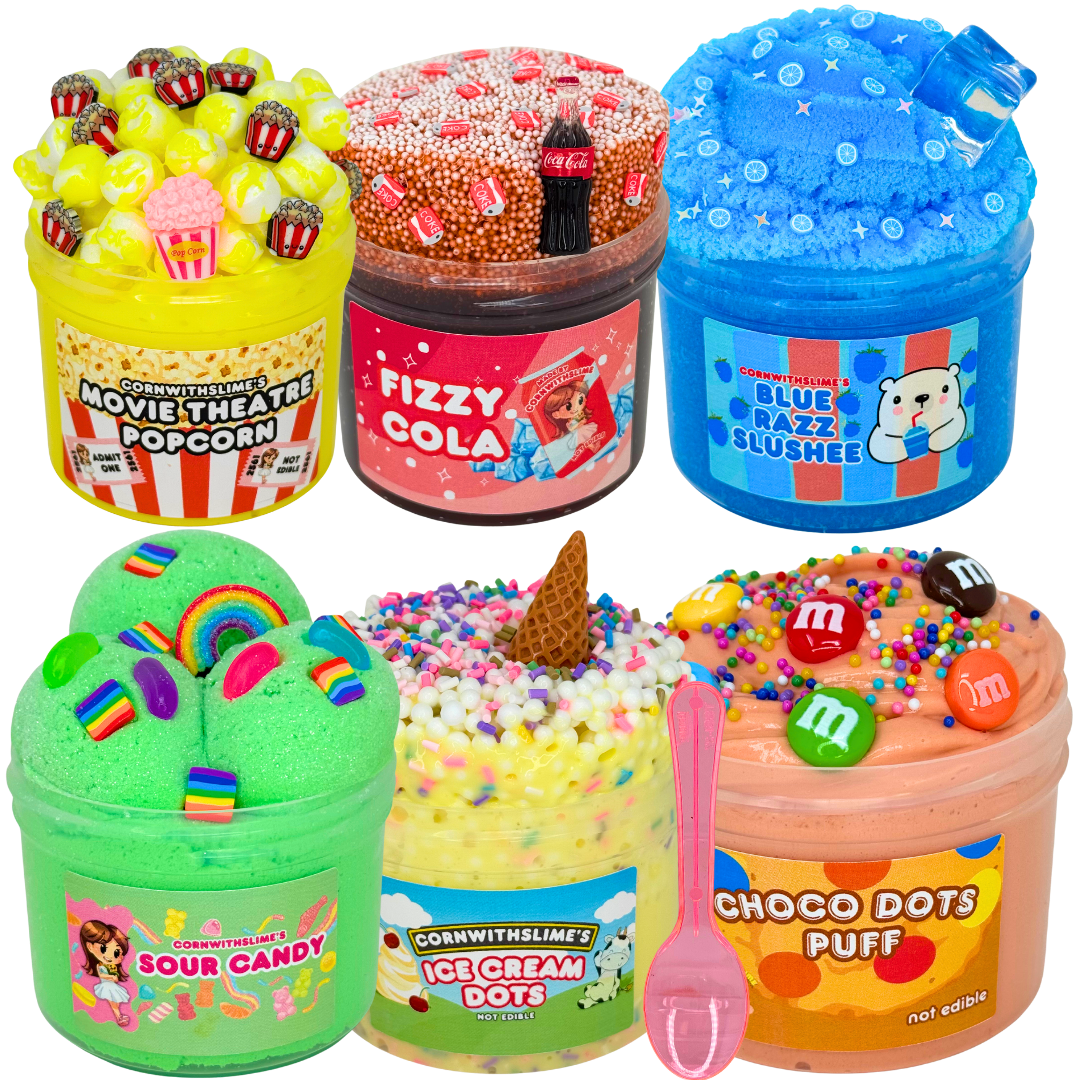 This bundle comes with one of each new slime from our Movie Theater Drop! $25 off original price (30% off). Additional discounts don't apply. |